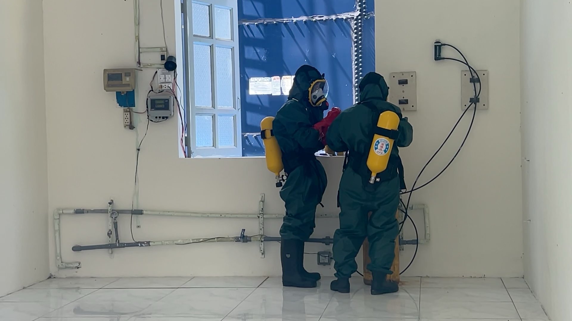 Xí nghiệp Cấp nước Cần Giờ diễn tập cấp nước an toàn - Ứng phó sự cố rò rỉ Clo tại Trạm bơm tăng áp.